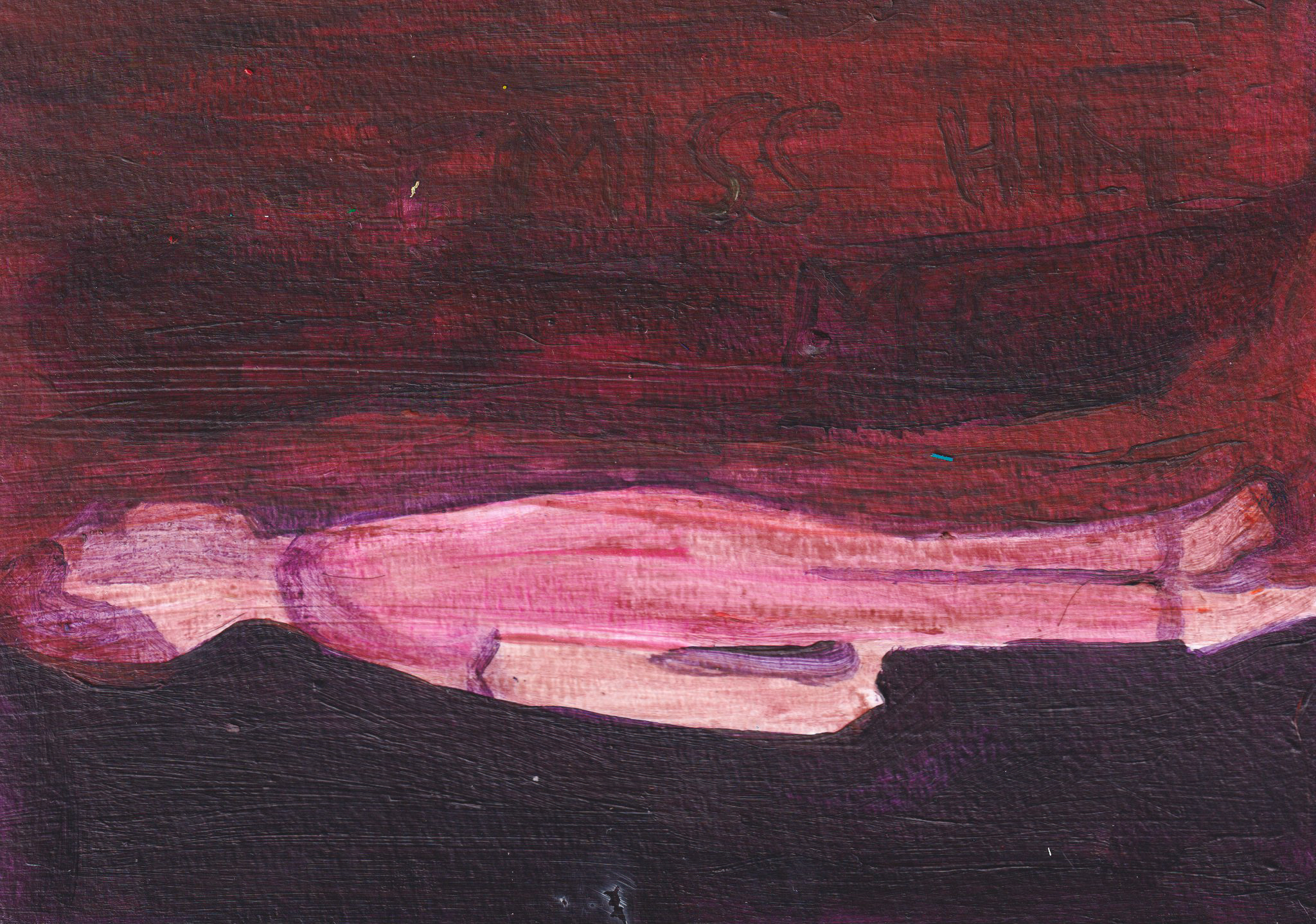 “I Miss Him”, 5x7 inches, acrylic on watercolor postcard stock
